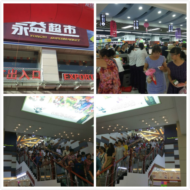 开业仪式举行前,超市门前的大型广场已经被闻讯而来的市民围得水泄不通,各种开业促销产品也早已摆上货架供市民抢购。8时28分,伴随着礼炮与鞭炮声,永益超市正式开门迎客。